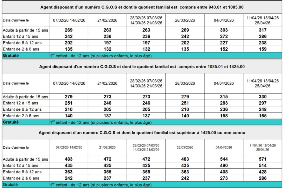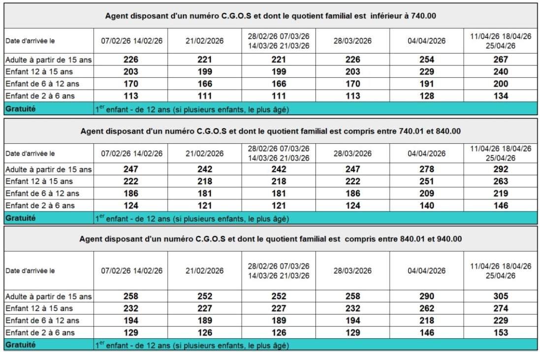 Conditions d'accès à l'offre : Seuls les agents n'ayant pas bénéficié d'un séjour dans le cadre des Prix Hiver / Printemps 2024 et 2025 peuvent se préinscrire. Être éligible au C.G.O.S.